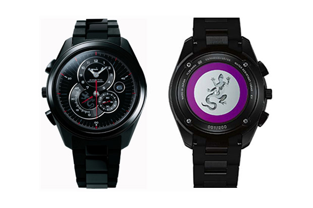 To celebrate their 20th Anniversary agnès b. has announced a new watch in collaboration with Seiko. This one is a kinetic chronograph in a black 47mm case. Only 200 of these will be available. The retail price is about $1700 USD. It comes in a special leather box.