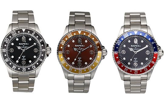 Bape has announced three new Bapex 2 models for release later this year. These watches continue with the Rolex-inspired look. They each come on a metal bracelet and have the option of a black, red/blue or brown face. No word on exact prices, but it's probably more than you would think.