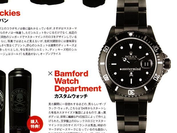 Bamford & Sons has partnered with the mastermind JAPAN designer label to release a custom Rolex Submariner. This is a very limited edition watch that's sure to have a mighty hefty price tag. The price will be determined by an open auction. Check out Sense Magazine for more details.