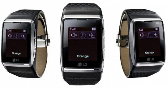 The new LG GD910 cell phone watch will be released by Orange UK in London on August 27th. It's going to have a price of around $826 USD. It has a VGA video camera and supports 3.5G signals. There's eight different "watch faces" to choose from. The LCD can mimic analog hands or and/or a digital display. This is definitely a niche gadget/watch that's not for everyone.