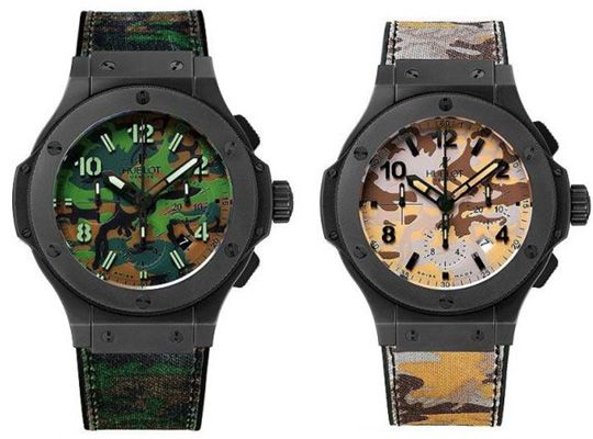 The Watch Happening blog has posted news of a couple camouflage-styled watches from Hublot. The name of these models is Commando Bang. They come on cloth straps that match the watch face. These are limited editions, but so far no word on price or availability.