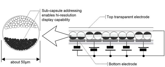 EPD stands for Electrophoretic Display, a method of display with electronic ink technology. Electronic ink is a proprietary material that is processed into a film for integration into electronic displays. Although revolutionary in concept, electronic ink is a straightforward fusion of chemistry, physics and electronics to create this new material. The principal components of electronic ink are millions of tiny microcapsules, about the diameter of a human hair. Each microcapsule contains negatively charged white particles and positively charged black particles suspended in a clear fluid. When a negative electric field is applied, the white particles move to the top of the microcapsule where they become visible to the user. This makes the surface appear white at that spot. At the same time, an opposite electric field pulls the black particles to the bottom of the microcapsules where they are hidden. By reversing this process, the black particles appear at the top of the capsule, which now makes the surface appear dark at that spot.