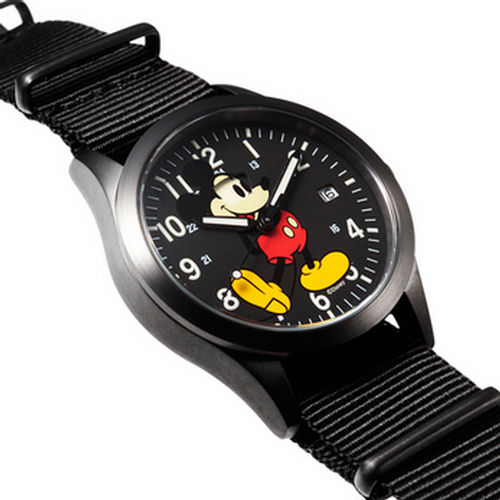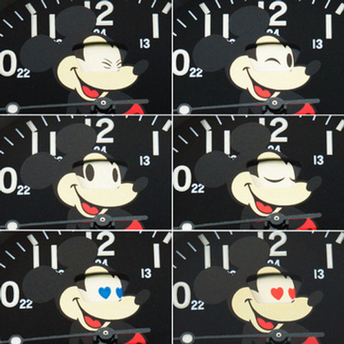 Jam Home Made (Japan) has released its second watch. As with the first watch, this watch features Mickey Mouse on the dial. The Secret Mickey Watch Type 2 is based on the popular classic military design. The watch is PVD black. The unique aspect of the watch is the eyes of Mickey which changes on a weekly cycle as can be seen in the photograph.